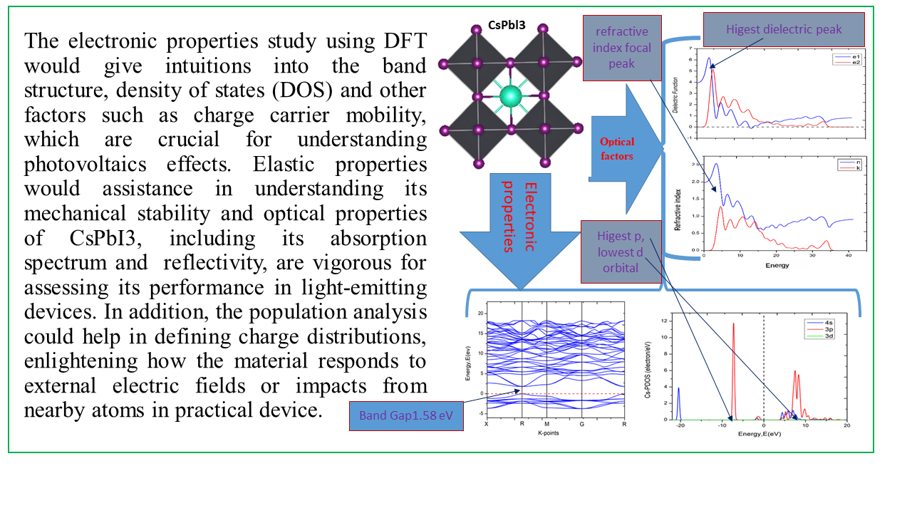 - CsPbI3 properties of electronic, elastic, optical and population analysis using DFT.